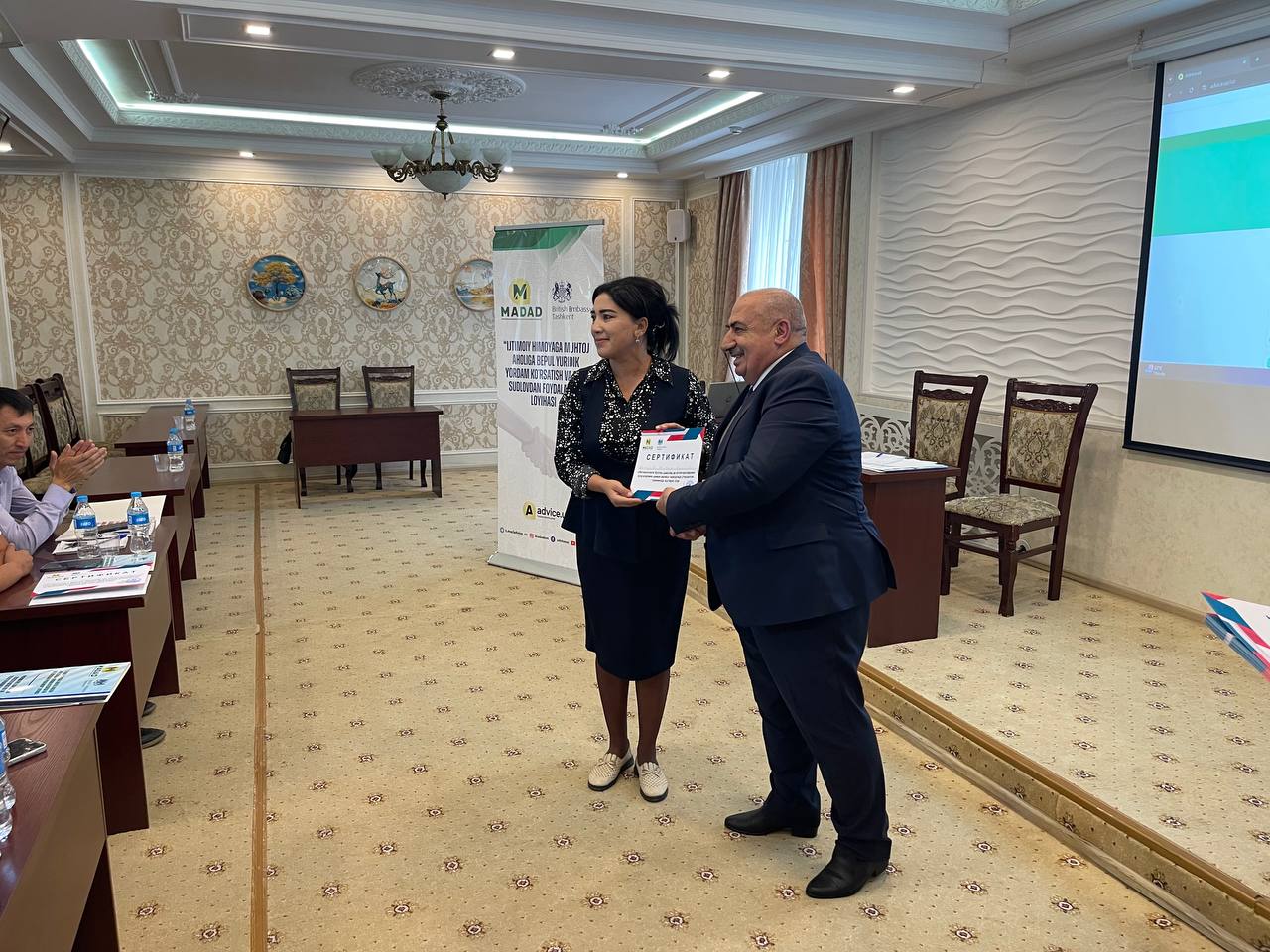 Унда ногиронлар ва хотин-қизларнинг ҳуқуқларини ҳимоя қилиш масалаларига оид конунчиликни мазмун-мохияти етказилди. Иштирокчиларга "Мадад" ННТ ижрочи директори Ш.Саидов, ижрочи директор ўринбосари У.Хакимов ва бўлим бошлиғи А.Эзозхоновлар томонидан лойиҳа мақсад ва вазифалари, ногиронлар ҳамда хотин-қизларнинг ҳуқуқларини ҳимоя қилиш масалалари бўйича батафсил тушунтиришлар берилди.